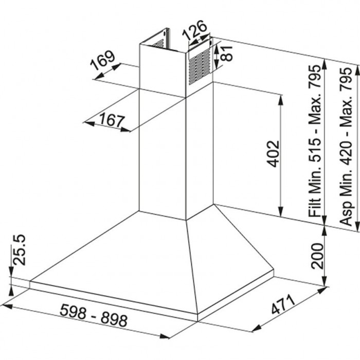 Absorber Chimney wall 90cm, style: 70 W inox, color: Chrome..