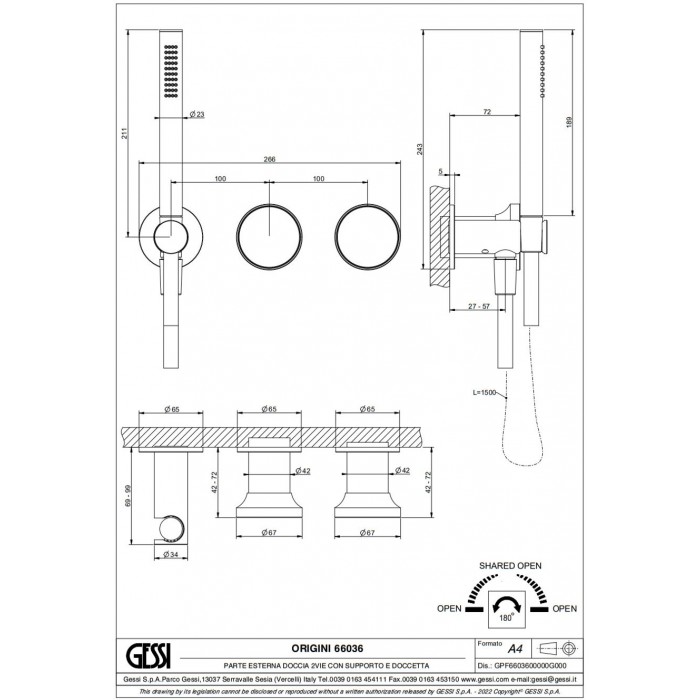 Shower tap Wall-mounted external part 2 way 3 holes material: Brass mixer with hand shower, hose and holder Dark Bronze, color: Bronze surface: Brushed
