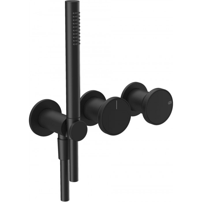 Shower tap Wall-mounted external part 2 way 3 holes material: Brass mixer with hand shower, hose and holder Matte Black, color: Black surface: Matt