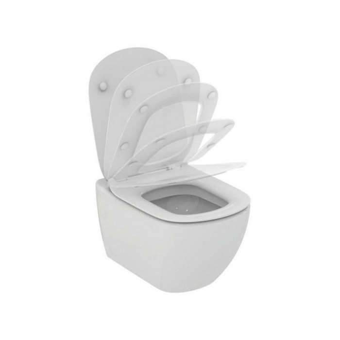 Wall-mounted toilet & toilet seat soft closing, style: Sandwich Aquablade hidden fixation Slim 53,5x36,5 surface: Glossy, color: White- Brand: Ideal Standard