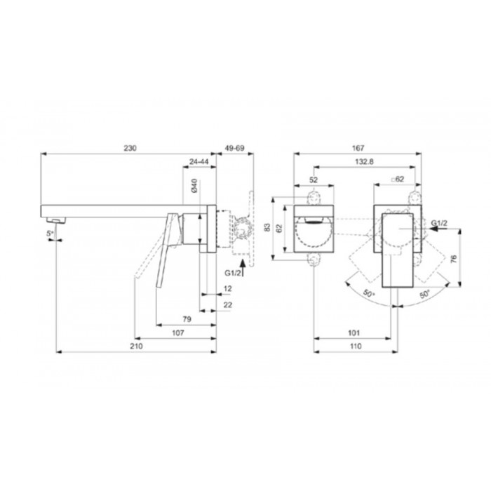 Wash basin tap Wall-mounted - external part 2 holes mixer Without waste, color: Gold material: Brass surface: Brushed Wall-mounted - external part