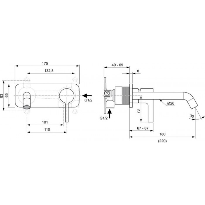 Shower tap Wall-mounted external part 2 way material: Brass mixer With plate without hand shower, ho..
