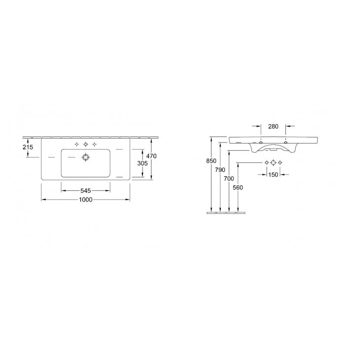 Washbasin Built-in 100x47 material: Porcelain With one hole Without overflow Ceramic Plus, color: White surface: Glossy- Brand: Villeroy & Boch