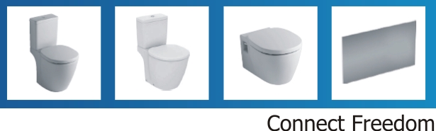 Σειρά Connect, εμπλουτισμένη με ειδικές λεκάνες Connect Freedom, υπερυψωμένες “Raised”, λεκάνες μεγάλου μεγέθους “XL” για ειδικές απαιτήσεις και νέους αντιθαμβωτικούς καθρέπτες μπάνιου Connect.